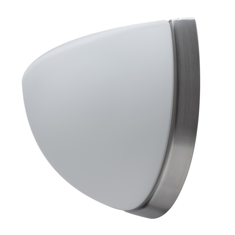Nástěnné svítidlo, základna kov, povrch bílá, límec kov bílá/nerez lesk/nerez broušená, difuzor sklo triplex opál, LED 8W, 970lm/1010lm, teplá 3000K/neutrální 4000K, 230V, do koupelny IP43, tř.1, 250x140x105mm