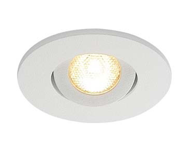 Podhledové, bodové, svítidlo výklopné +-30°, těleso hliník, povrch černá/bílá/broušený, LED 2,2W, 143lm, teplá 3000K, 230V, IP44, tř.1, rozměry d=52mm.