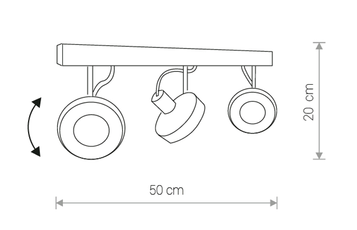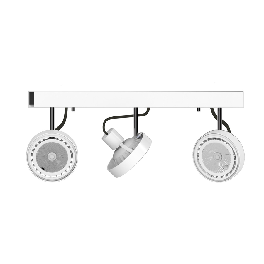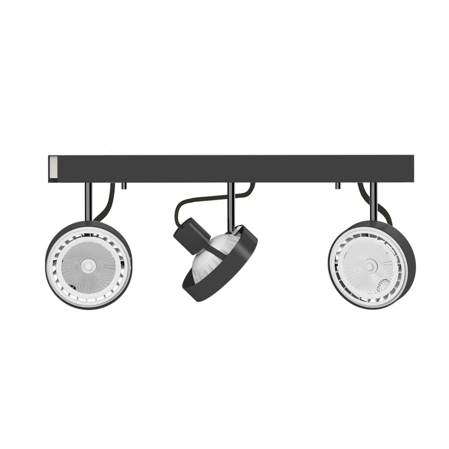 Stropní tříbodové svítidlo, nastav směr svícení, těleso kov, povrch bílá, nebo černá grafit, bílé/černé detaily, pro žárovku 3x75W, GU10, 230V, IP20, tř.1, rozměry 500x200mm