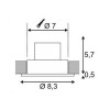 Stropní, vestavné, bodové, svítidlo, těleso hliník, povrch černá, nebo bílá, skllo čiré, LED 12W, teplá 3000K, 630lm, Ra80, stmívatelné LC, vč trafa na kabelu 230V/500mA/IP20, IP65/IP20, d=83mm, h=62mm