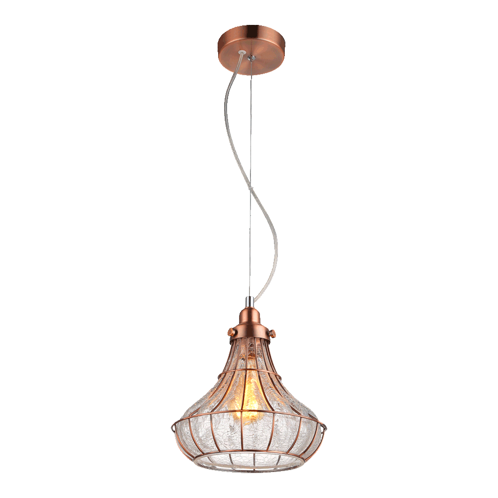 Závěsné svítidlo, základna kov, povrch chrom/měď, difuzor sklo opál/čiré, pro žárovku 1x60W, E27, 230V, IP20, tř.2, rozměry d=220mm, vč závěs kabelu l=1500mm, lze zkrátit.