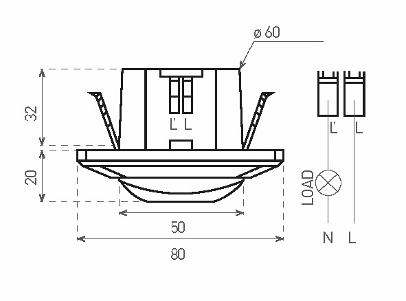 PIR 120°/180° 500W, IP20, KU68 500W IP20 Pohybové čidlo místo vypínače