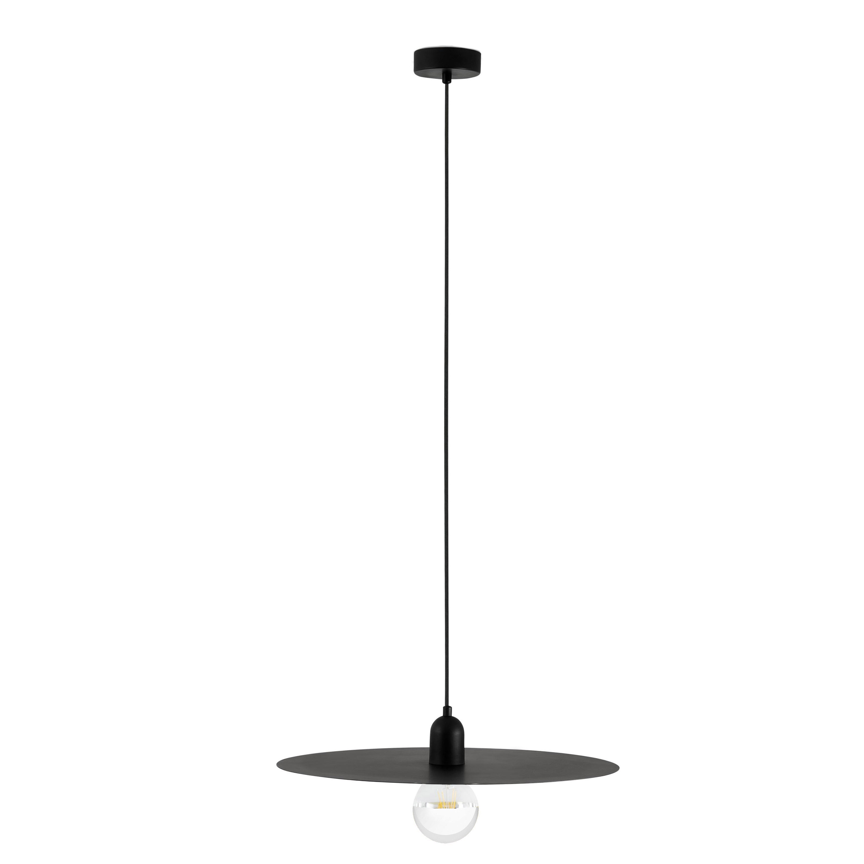 Stropní svítildo. základna kov, těleso kov, barva bílá /černá/zlatá dle typu, pro žárovku 1x20W, E27, 230V, IP20, rozměry: d=500mm, vč. závěsu l=1590mm, lze zkrátit