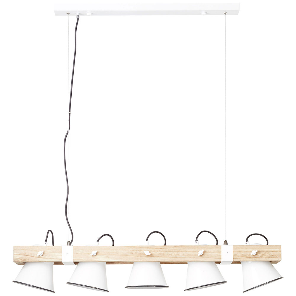 Závěsné svítidlo, základna kov, povrch bílá, černá, dřevěné těleso, nastavitelný sklon klobouku, pro žárovku 5x10W, E27, 230V, IP20, tř.1, rozměry 950x200mm, vč závěsu l=1150mm lze zkrátit