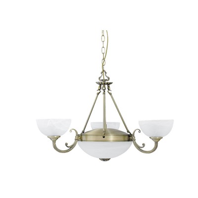 AGATHA 3x40W E14 + 2x60W E27 - Závěsné svítidlo, základna kov, povrch mosaz zlatá lesk, difuzor sklo kamenné, pro žárovku 3x40W E14 + 2x60W E27, 230V, IP20, tř.1. rozměry d=800mm h=480mm, včetně závěsu h=1000mm, lze zkrátit