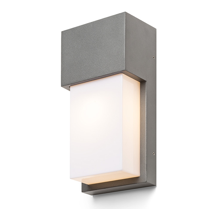 CHICAGO 18W E27 - Nástěnné svítidlo, základna hliník, povrch šedočerná antracit, difuzor plast opál, pro úspornou žárovku 1x18W, E27, A60, 230V, IP44, tř.1, 81x120x246mm