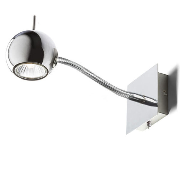 GLOSSY husí krk - Nástěnné bodové svítidlo, nastavitelný směr svícení, těleso kov, povrch chrom, pro žárovku 1x35W, GU10 ES50, 230V, IP20, 75x100mm, flexibilní rameno husí krk l=350mm, s vypínačem