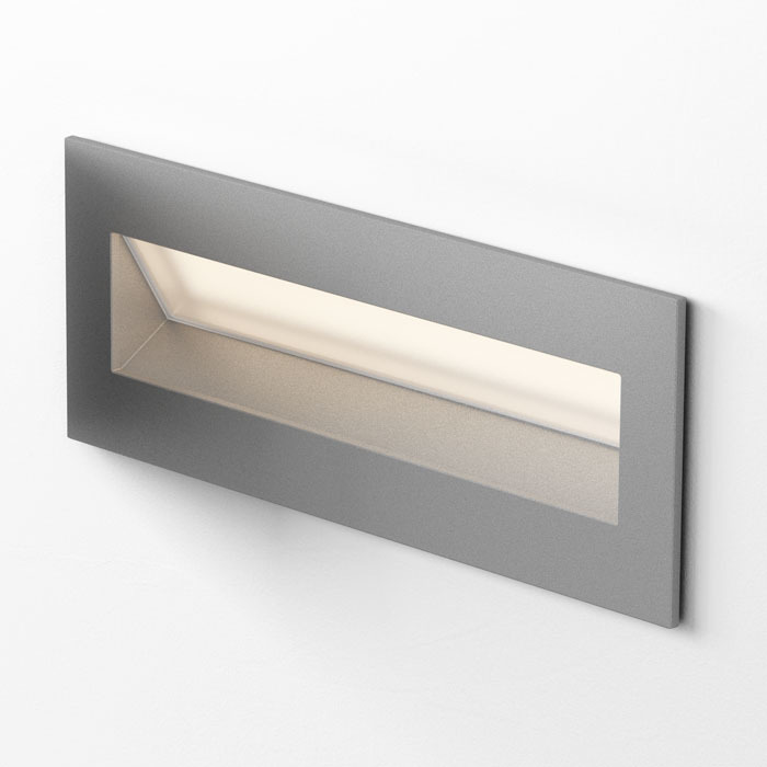 IRDETO RE IP20 - VÝPRODEJ Vestavné, svítidlo do stěny, těleso hliník, povrch šedostříbrná, difuzor opál, LED 3W, teplá 3000K, 160lm, Ra80, 230V, IP20, tř.1, rozměry: 133x52x73mm, vč. montážního boxu, svítí