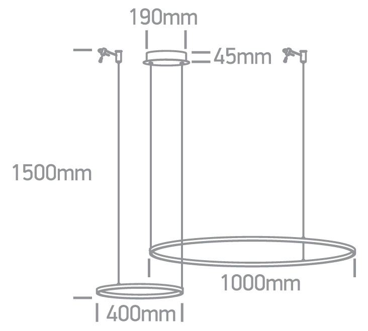 | Rozměry | d=400+1000mm, vč. závěsného kabelu l=1500mm, lze zkrátit. Uváděné rozměry jsou pouze informativní a výrobce je může změnit. |