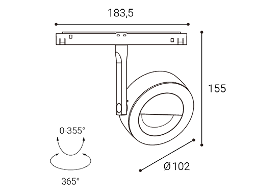 SITAR 15W 48V DALI - Svítidlo do magnetického systému, reflektor, nast. směr svícení, těleso kov, povrch černá, LED 15W, 675lm, teplá 3000K, stmív. DALI, 48V, IP20, rozměry d=102mm, h=155mm.