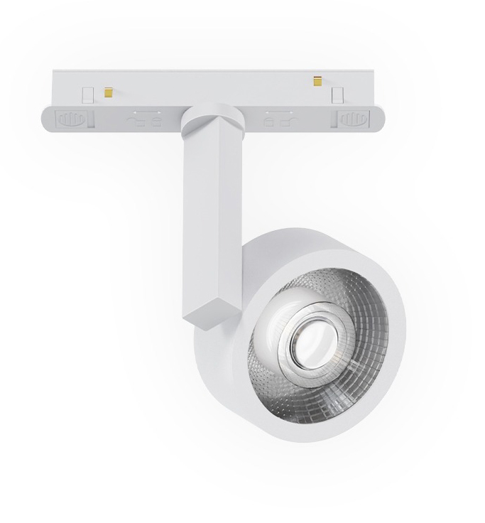 - Bodové svítidlo do magnetického systému, reflektor, nast. směr svícení, těleso kov, povrch bílá, LED 8W, 480lm, neutrální 4000K, stmív. DALI, 48V, IP20, rozměry d=72mm, h=118mm.