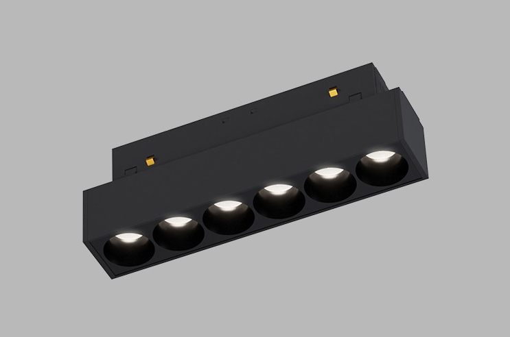 Svítidlo do magnetického systému, těleso kov, povrch bílá/černá, LED 6W/534lm, 12W/1068lm, TW dle typu, přepín CCT teplá 3000K/3500K/neutrální 4000K, stmívání DALI dle typu, vyzař. úhel 38°, 48V, IP20, rozměry dle typu.