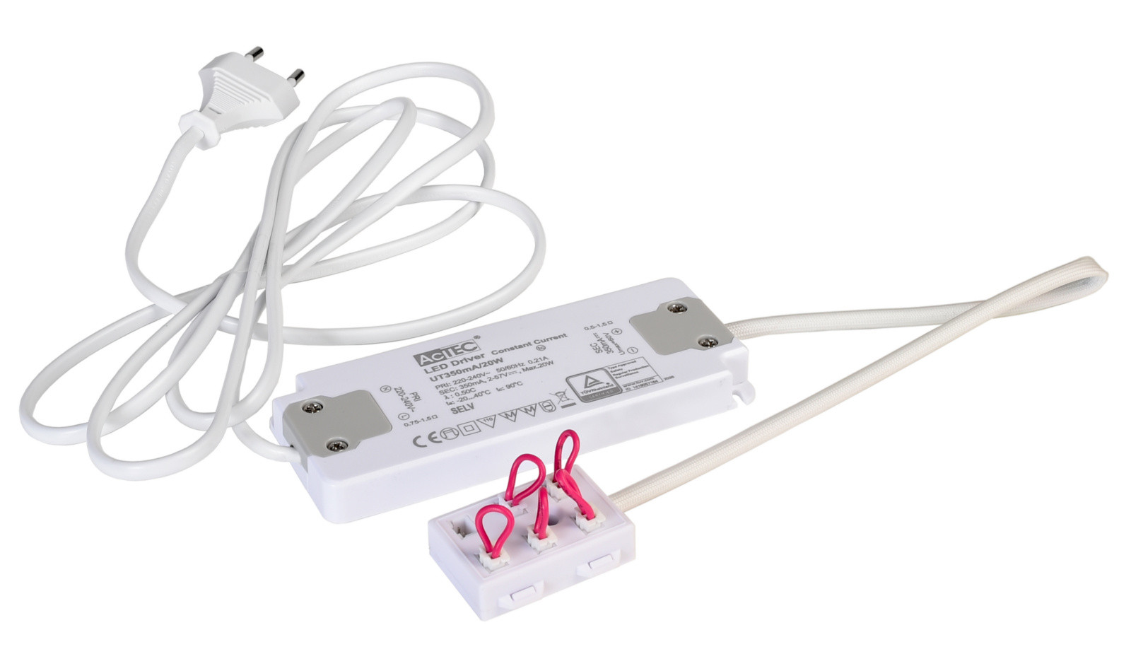 ŠTEF LED 20W - Napájecí zdroj konstatního proudu pro LED 20W, 350mA, 230V, IP20, rozměry 2475x20x13mm, pro 6 svítidel.