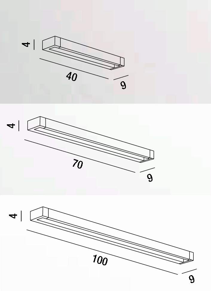 Nástěnné svítidlo s otočnou clonou k zrcadlu, těleso hliník, povrch bílá, nebo černá, difuzor plast opál, LED 17W, 23W, 35W, přepínatelná CCT teplota teplá 300K, neutrální 4000K, denní 6000K, Ra80, 230V, IP20, rozměry dle typu