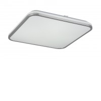 Stropní svítidlo, čtvercové, těleso kov, povrch chrom, difuzor plast opál se třpyt. efektem, LED 72W, dálk ovl. (součástí) lze nastavit CCT teplá 3000K - denní 6200K, 4500lm, stmív, 230V, IP20, rozměry 455x455x75mm.