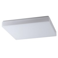Stropní, přisazené svítidlo, základna kov, povrch bílá, difuzor PC opál, pro žárovku E27, nebo LED, stmívatelné DALI, 230V, do koupelny IP44, IK10, tř.1, rozměry 220x220x55mm