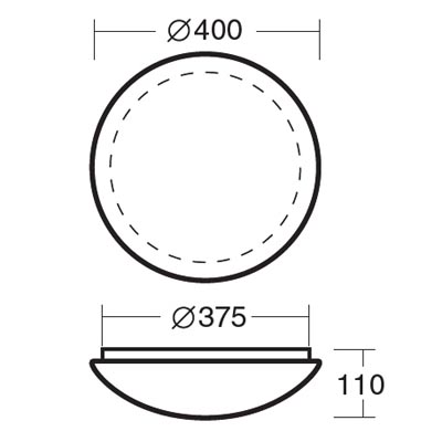 Stropní svítidlo, základna kov, povrch bílá, difuzor plast PC, nebo PMMA, opál mat, pro žárovku 60W, nebo LED, 230V, stmív 1-10V nebo DALI. do koupelny IP44, IK10, d=400mm, h=110mm, úchyt stínítka klapky