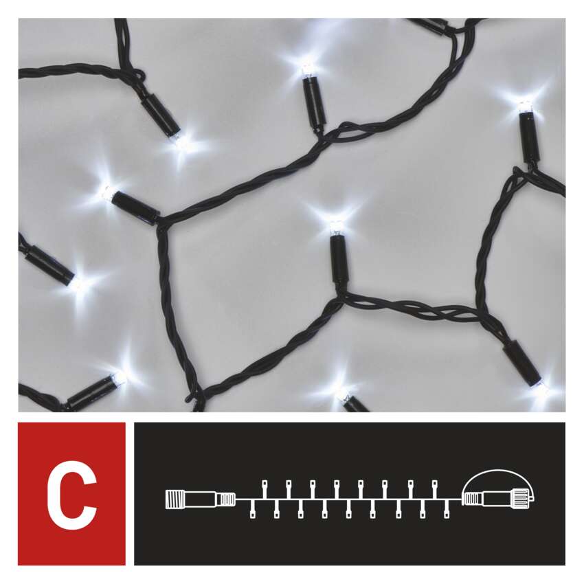 | Výhodné vlastnosti | Jednoduchá možnost vytváření větších sestav vánočního osvětlení z jednoho napájecího zdroje, pomocí spojek a rozbočovacích konektorů, max 500 LED, zvýšená odolnost použití 365 dní v roce |
