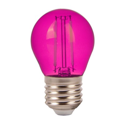 LED žárovka, barva: růžová, zelená, modrá, červená, těleso kov šedostříbrná, sklo čiré, LED 2W, 60lm, E27, G45, 230V, tř.1, rozměry d=45mm, h=75mm