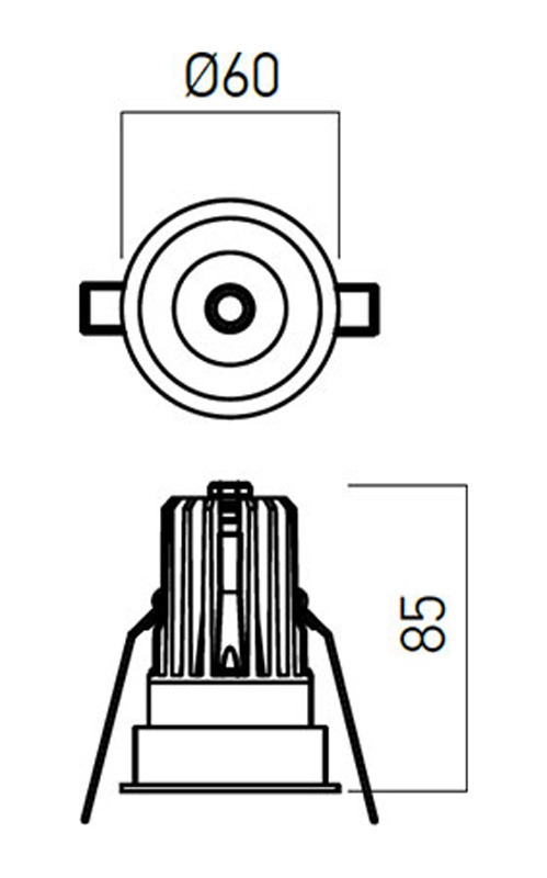 Stropní, podhledové, bodové, komínkové svítidlo, materiál hliník, povrch bílá/zlatá/černá, krycí sklo čiré, LED 7W, teplá 3000K/neutrální 4000K, 350mA, vyzař. úhel 36°, IP20, Ra80/Ra90, tř.3, d=60mm, h=85mm, trafo samostatně