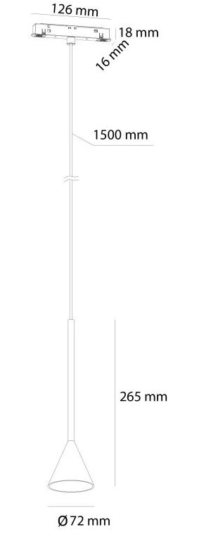| Rozměry | d=72mm, h=265mm, vč závěs kabelu l=1500mm, lze zkrátit. Uváděné rozměry jsou pouze informativní a výrobce je může změnit. |
